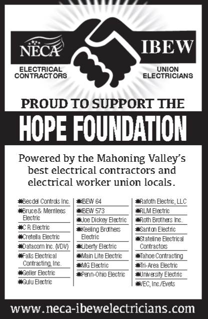 “Giving back to the community is a tenet of union electrical contractors and electrical workers, and the opportunity to help children-in-need through the Hope Foundation was an important one we quickly agreed to participate in,” said Jim Burgham, business manager for IBEW Local 64 (Youngstown).