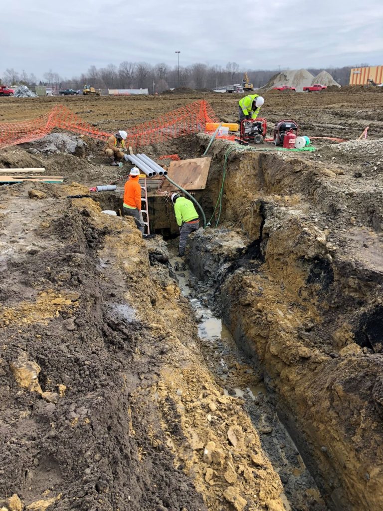 DeBartolo Commons, a greenspace featuring a bandstand, athletic field and retail spaces along the mall’s exterior wall, is scheduled to be completed this winter. Santon Electric is handling the electrical contracting work.
