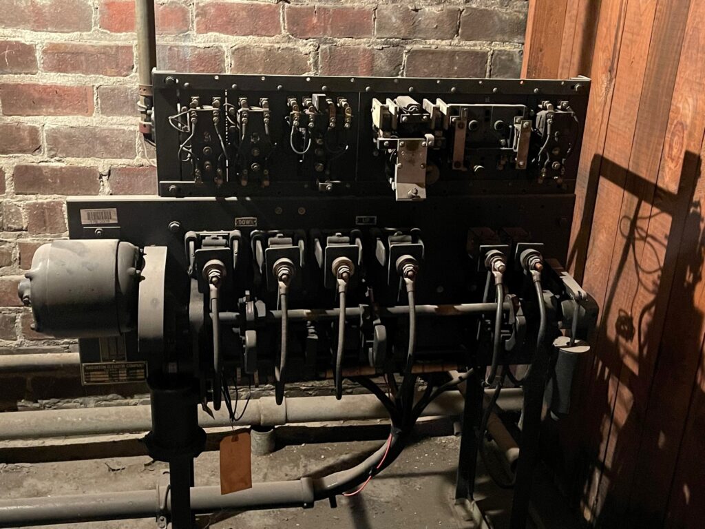 Original slate board panel in the basement of Rica Building.