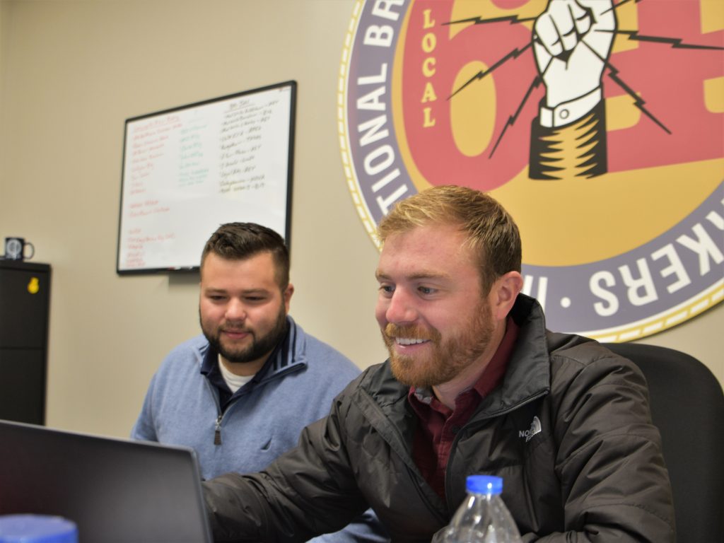 Scott Satterlee, right, has been preparing Cody Hilliard for his upcoming new role as president and membership development coordinator with IBEW Local 64 in Youngstown.